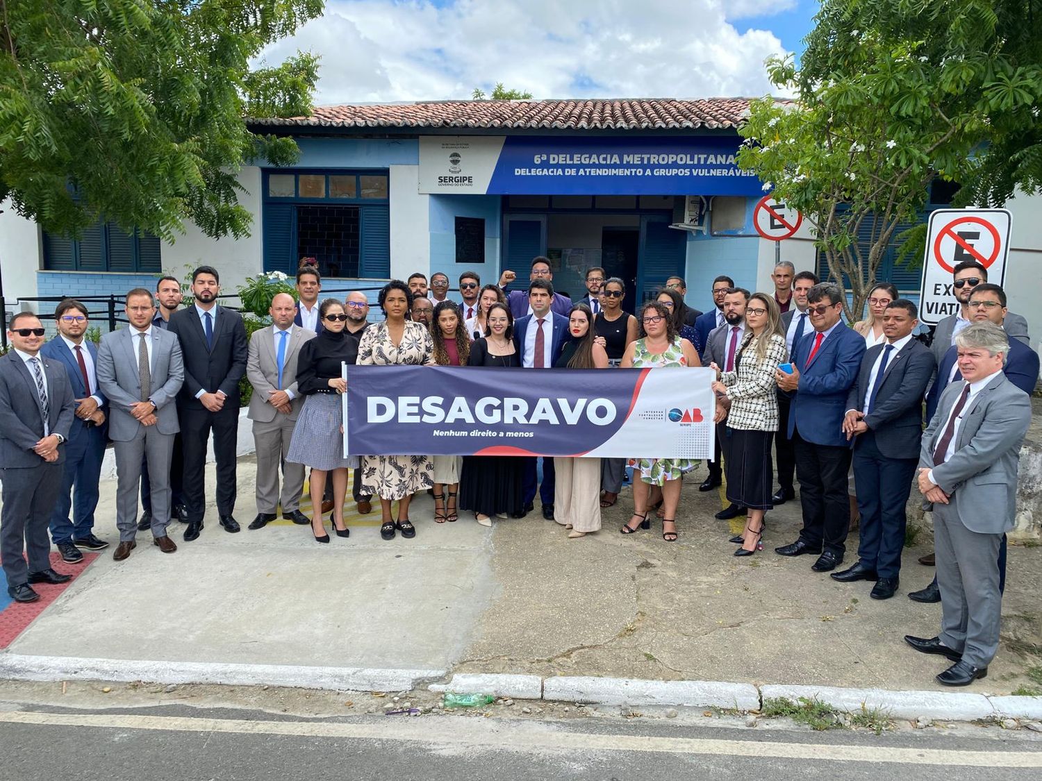 A advocacia sergipana marcou presença no ato de desagravo público em desfavor do delegado de polícia, Joel dos Santos Ferreira, realizado na manhã desta sexta-feira, 8. A leitura do desagravo aconteceu em frente a 6º Delegacia Metropolitana Sergipana (6º DM), no conjunto Eduardo Gomes, em São Cristóvão.