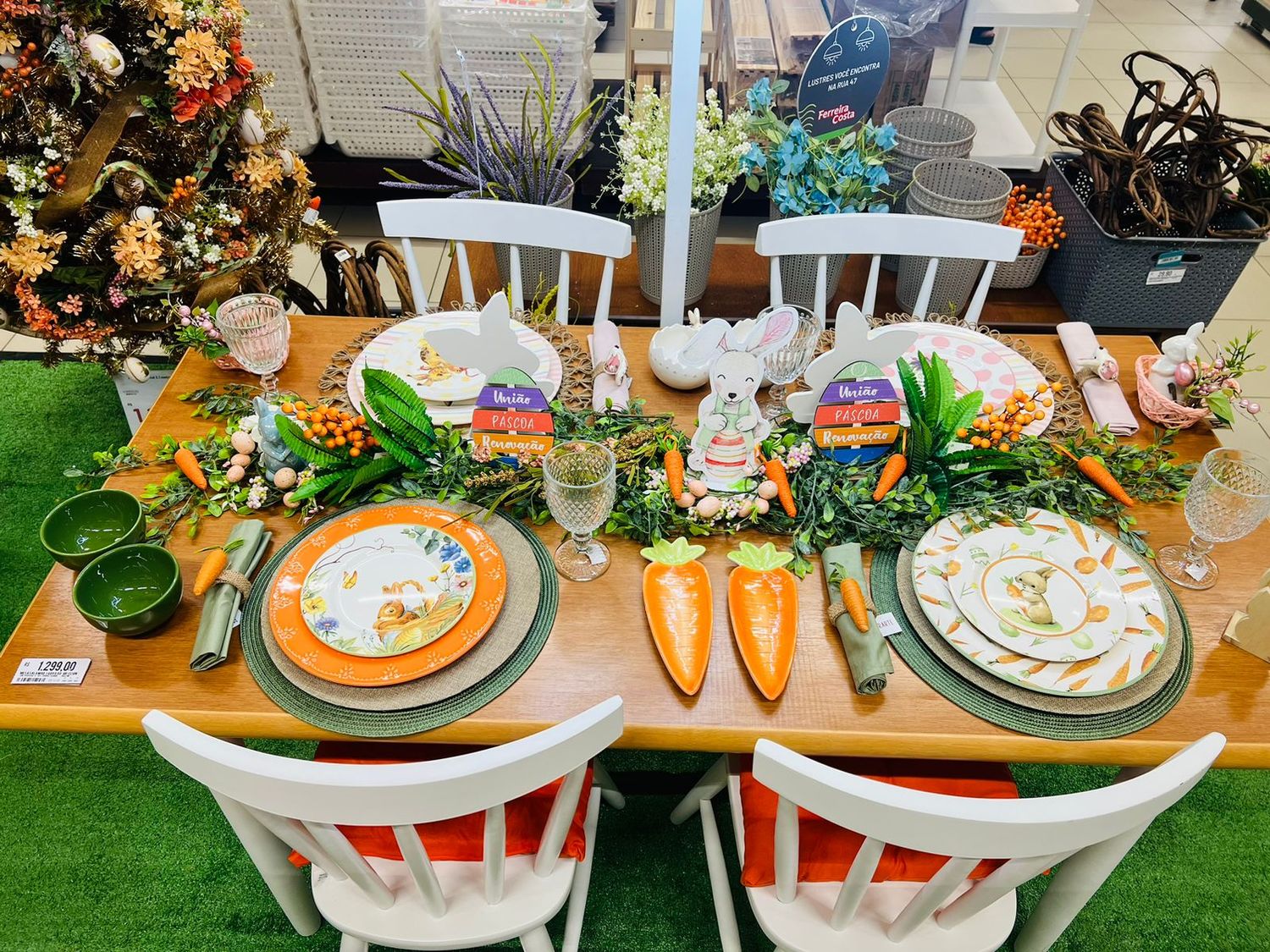 Pensando em tendências para a data, a Ferreira Costa preparou diversos estilos de decorações para todos os tamanhos de eventos. Sem fugir da simbologia da data, os coelhos e os ovos que representam fertilidade e renascimento, podem estar presentes em todos os cantinhos da decoração, da mesa posta às portas e móveis da casa.