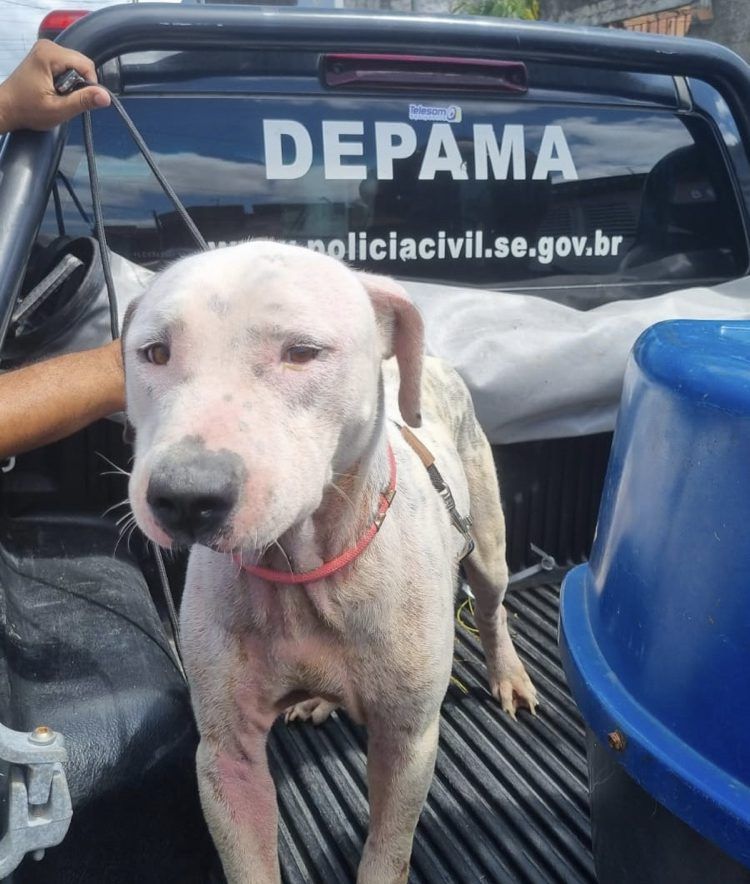 Equipe de policiais civis da Delegacia Especial de Proteção Animal e Meio Ambiente (Depama) resgatou um cachorro em situação de maus-tratos, amarrado no fundo de uma casa abandonada. A ação ocorreu nesta quinta-feira, 04, no conjunto Parque dos Faróis, em Nossa Senhora do Socorro.