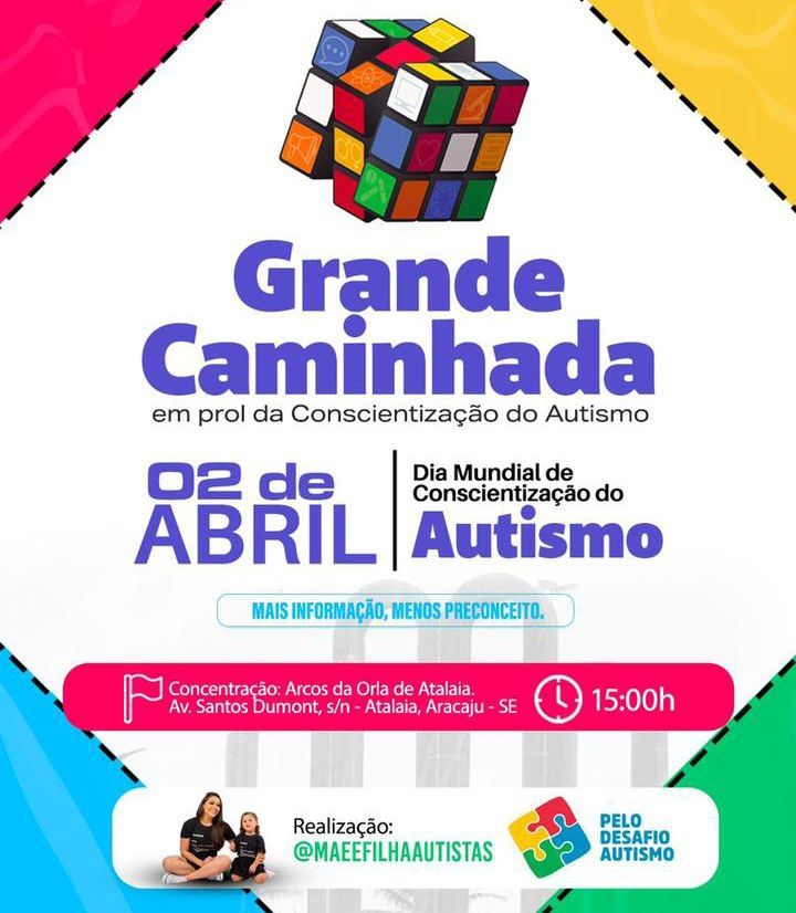 Em Aracaju o dia será lembrado com uma grande caminhada que sairá às 15h dos arcos da Orla da Atalaia. A organização do evento é de Gabriela Rodrigues do instagram @maeefilhaautistas e do Lucas Braga do instagram @pelodesafioautismo