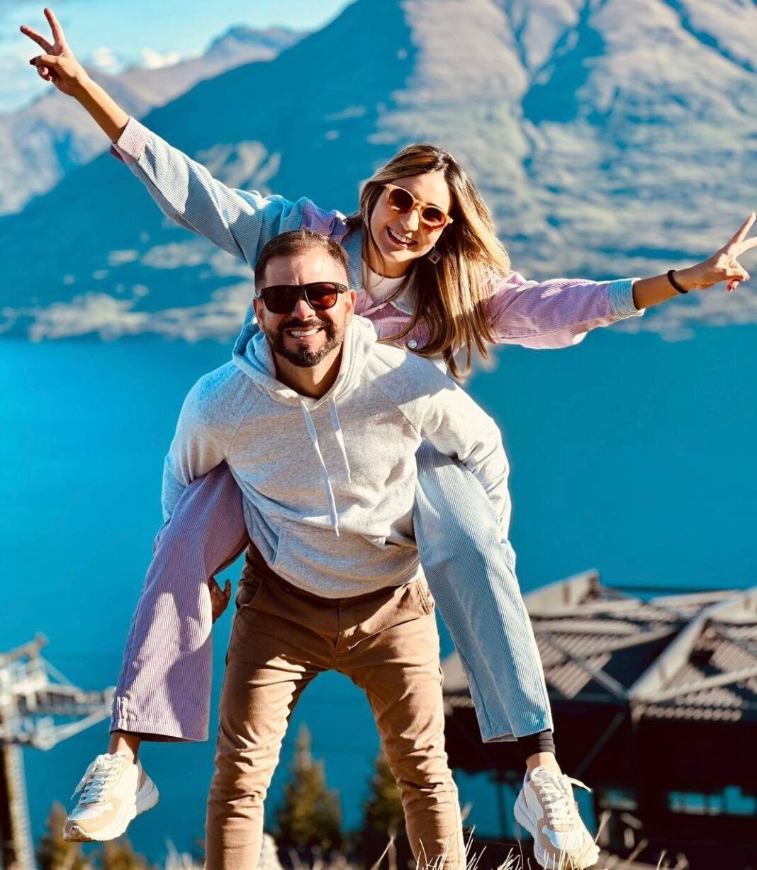 O jornalista Felipe Martins e sua esposa Isabela Aguiar curtem as merecidas férias do outro lado do mundo, no paradisíaco país da Nova Zelândia.