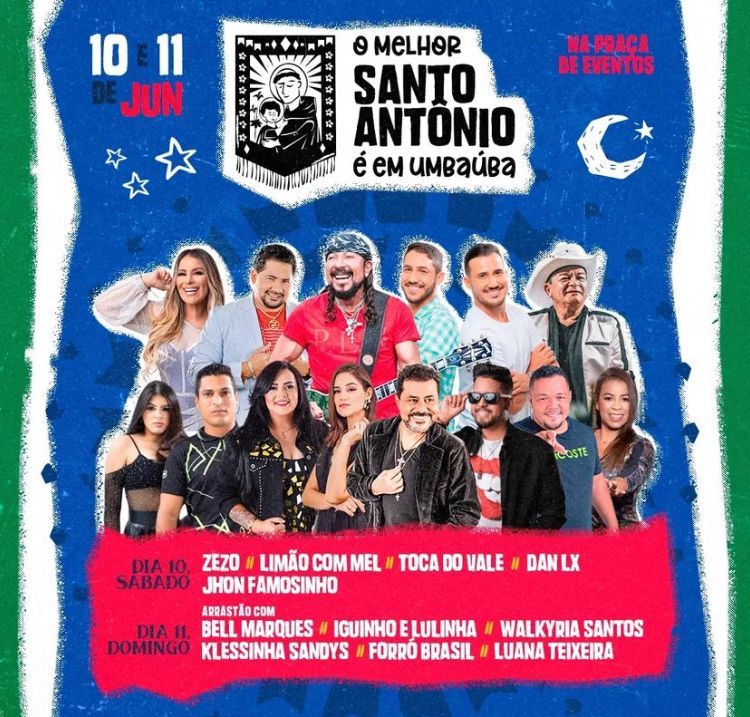 Nos dias 9, 10 e 11 de junho, Umbaúba, Sergipe, será palco da melhor festa de Santo Antônio do Brasil, com uma programação oficial repleta de atrações imperdíveis. Prepare-se para dois dias de pura diversão e animação!