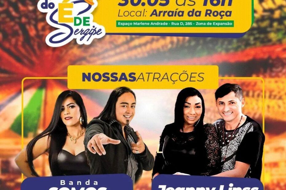 Entrando no clima junino, a associação “É de Sergipe” vai realizar o Forró do “É de Sergipe” no dia 30 de maio, a partir das 16h, no Arraiá da Roça (Espaço Marlene Andrade – Rua D, 285, na Zona de Expansão). É hora de preparar a bota e vestir os melhores trajes juninos ao som do autêntico forró nordestino, com muita animação e descontração com as bandas “Somos Loucos” e “Jeanny Lins Dedé Brasil”.