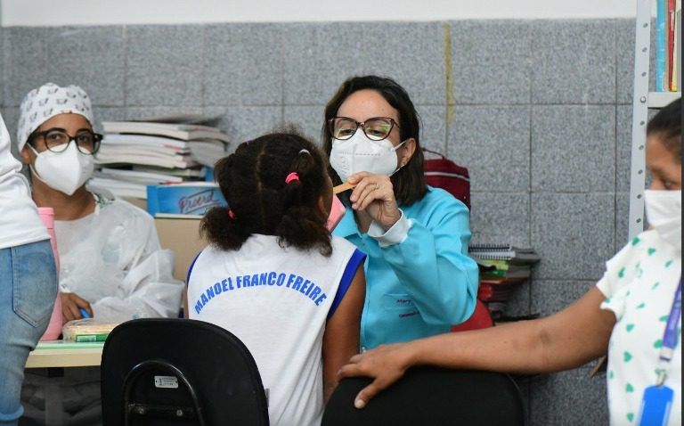 Lígia Maria dos Santos esclareceu, ainda, que a ação é realizada uma vez por ano em cada unidade de ensino e que quando identificado alguma alteração os estudantes são reavaliados antes de serem encaminhados para os profissionais específicos de cada área. “No caso da acuidade visual, por exemplo, o aluno é retestado se não conseguir a nota considerada normal de visão. A gente retesta esse aluno para que não fique só uma avaliação, então a gente marca outro dia para reavaliar todos os alunos que deram alguma alteração no teste. E quando confirmado, a gente encaminha para unidade de referência dessa criança e a equipe de lá direciona para o profissional específico, oftalmologista, no caso da visão, ou nutricionista, se for um déficit nutricional”, detalhou.