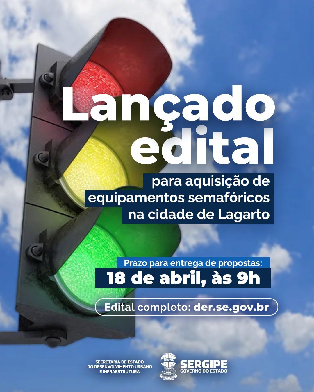 Empresas especializadas interessadas em participar de licitação para aquisição, fornecimento e instalação de equipamentos semafóricos na sede do município de Lagarto devem prestar atenção no edital publicado pela Secretaria de Estado do Desenvolvimento Urbano e Infraestrutura (Sedurbi), através do Departamento Estadual de Infraestrutura Rodoviária de Sergipe (DER/SE). O certame é na modalidade ‘Tomada de Preço’ e tem o número 01/2023. Além dos dados para recebimento das propostas, que é 18 de abril às 9h, o edital traz informações relacionadas sobre o prazo de execução, vigência de contrato e valor estimado. A garantia de assistência técnica de um ano também está prevista.