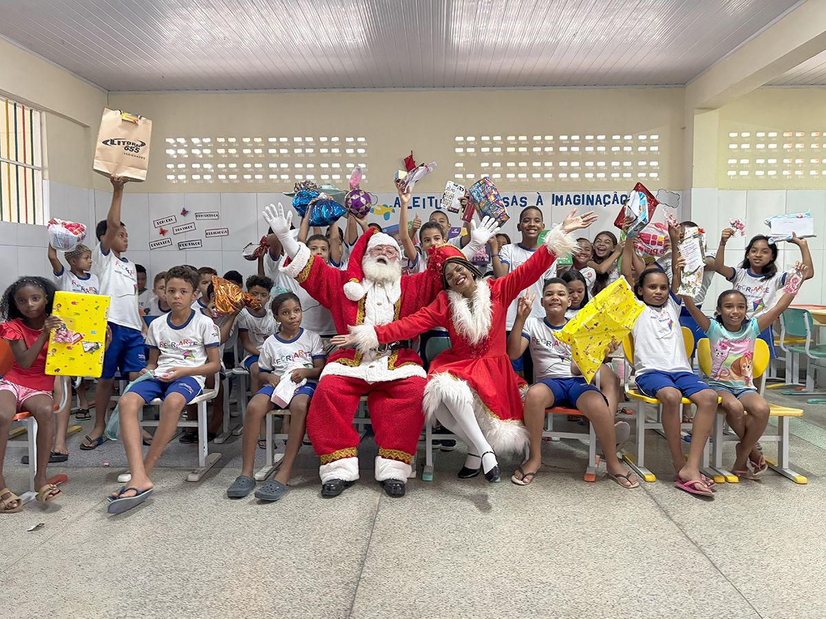 A semana do Natal começou com uma visita especial para as meninas e os meninos do projeto Recriarte, em Aracaju (SE). Na segunda-feira, 23 de dezembro, o Papai Noel foi à instituição, localizada no bairro Santa Maria, entregar presentes para 55 crianças contempladas pela Campanha Brinquedo dos Sonhos, realizada pelo Shopping Jardins.