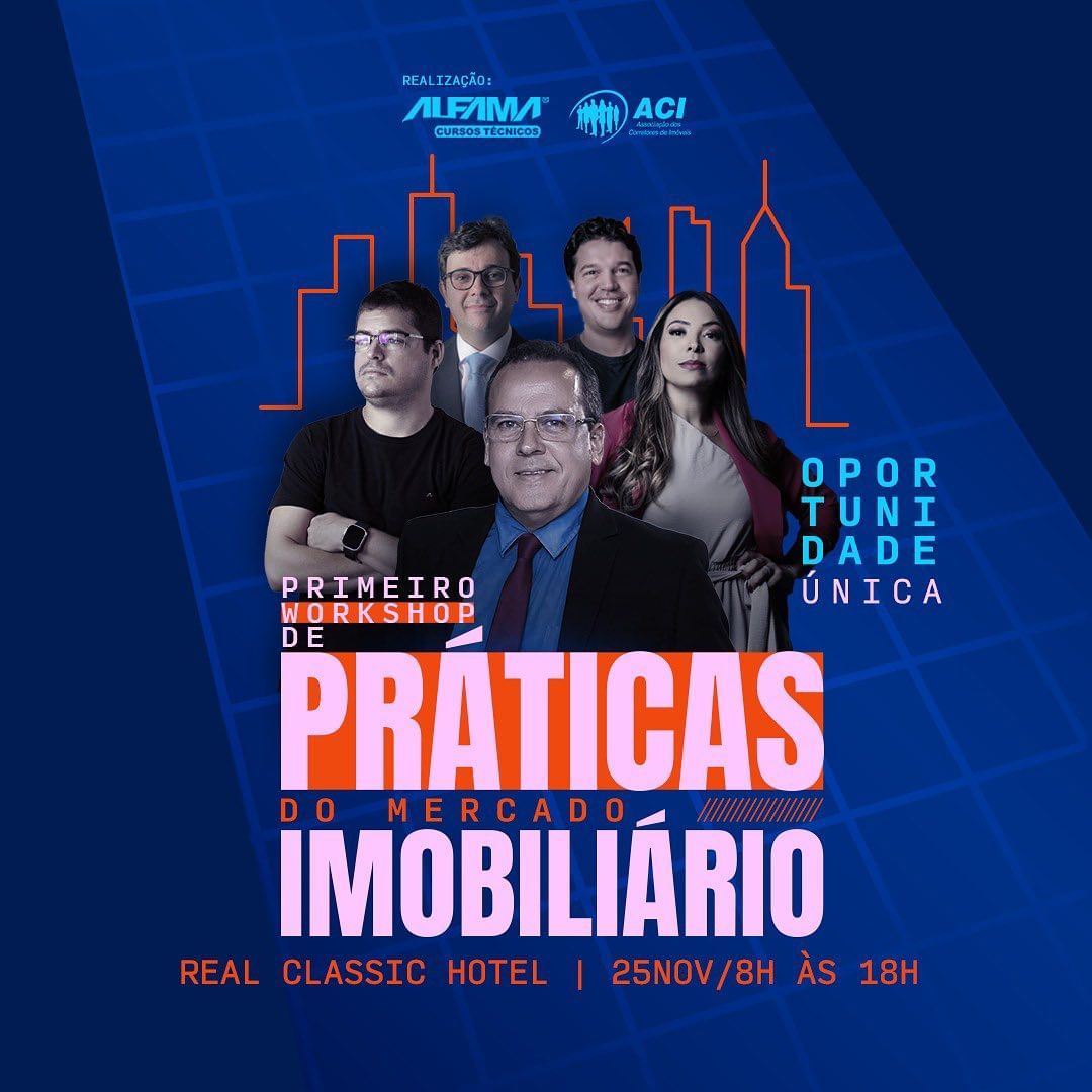 Aracaju receberá no dia 25 de novembro o 1º Workshop de Práticas do Mercado Imobiliário. O evento, que é uma realização da Associação dos Corretores de Imóveis de Sergipe (ACI/SE) e da Alfama Cursos, acontecerá no Real Classic Hotel.