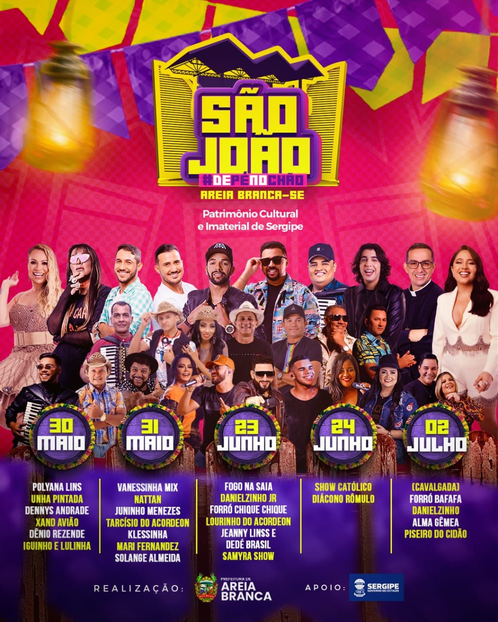 Na noite desta quinta-feira (11) a prefeitura de Areia Branca por meio da Secretária Municipal de Cultura Esporte Lazer e Turismo, anunciou a programação oficial do São João de Pé no Chão de Areia Branca.