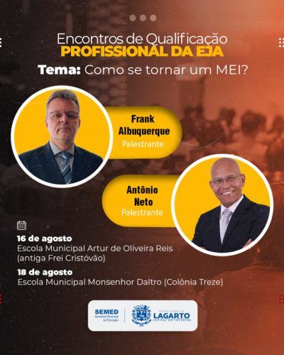 Nos próximos dias 16 e 18 de agosto, a Prefeitura de Lagarto, através Secretaria da Educação, promoverá Encontros de Qualificação Profissional da Educação de Jovens e Adultos do Ensino Fundamental (EJAEF).