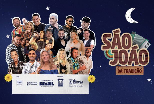 A Prefeitura de São Cristóvão tornou público a programação completa do “São João da Tradição 2023″. As festas acontecerão na antiga Estação Ferroviária, no Centro Histórico da cidade, nos dias 16 e 17 de junho, e no Eduardo Gomes, nos dias 14 e 15 de julho. Dentre as atrações confirmadas estão Zé Tramela, Forró Maior e Danielzinho Jr.