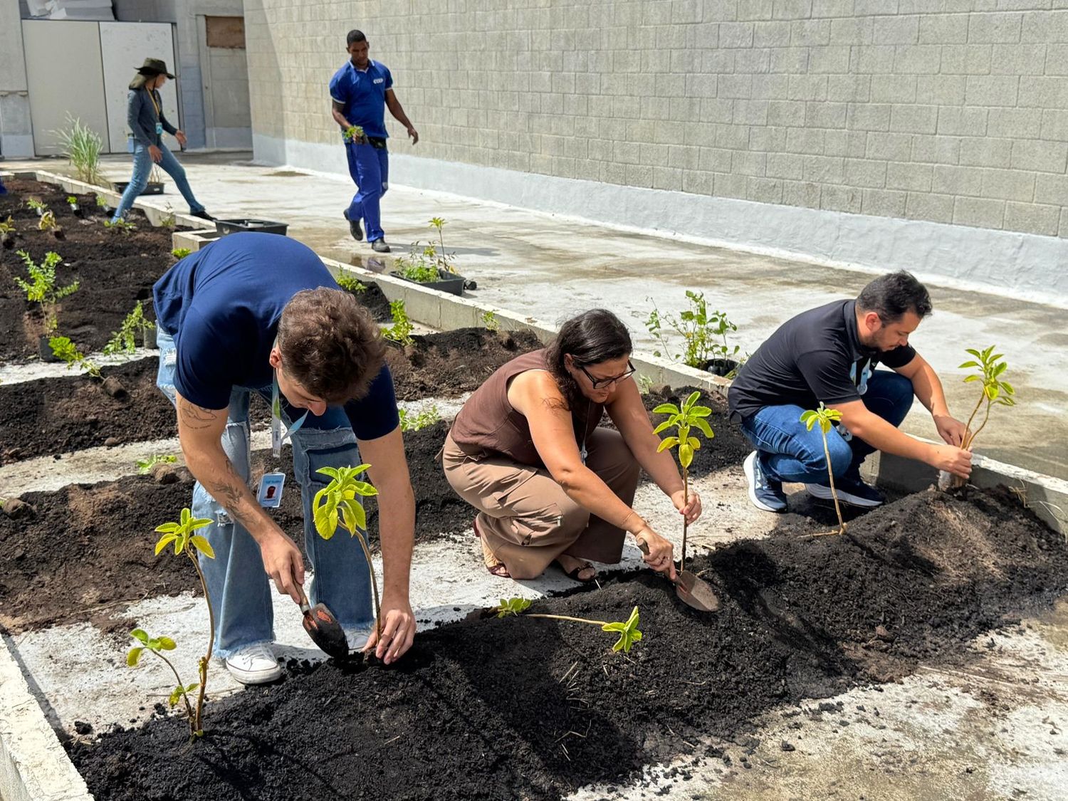 O processo de implantação também contou com o engajamento direto dos colaboradores da administração do empreendimento. Em uma ação coletiva, as equipes participaram do plantio das mudas, contribuindo para a construção de um espaço que vai além do paisagismo, assumindo um papel funcional e terapêutico dentro do ambiente corporativo.