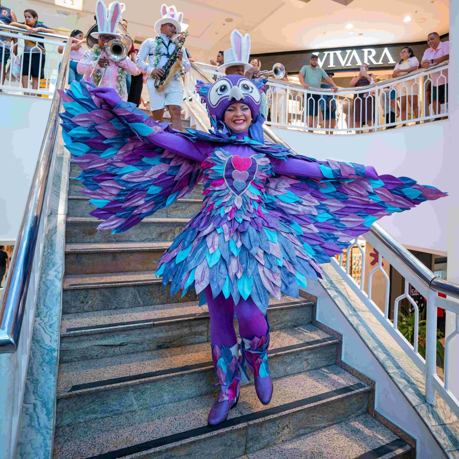 A programação tem início às 16h, com concentração na Praça de Eventos Rio. De lá, o cortejo percorre os corredores do shopping acompanhado por personagens lúdicos e uma bandinha musical, criando uma atmosfera festiva e envolvente para o público de todas as idades.